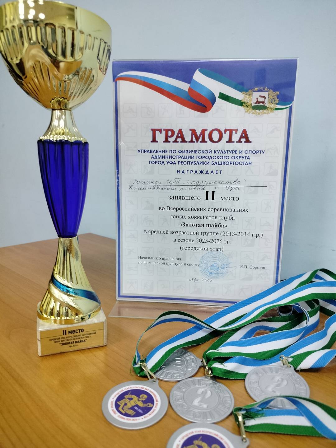 На базе спортивной школы №3 имени М. Азаматова,19 января 2026 года хоккейная команда «Айсберг» Центра творчества «Содружество», представлявшая Калининский район г. Уфы , завоевала второе место на городском этапе Всероссийских соревнований юных хоккеистов клуба «Золотая шайба»!